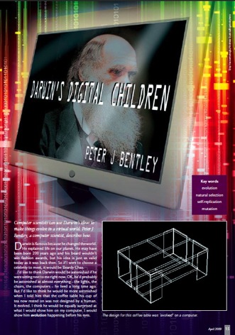 I was asked two or three months ago to write an article about Darwin, evolution and computers for the schools science magazine Catalyst. Took a while to come out, but I’ve just been sent a copy. The style is deliberately aimed at our cynical teenage audience, hopefully some of them will find the ideas of interest; you can read it by clicking here.