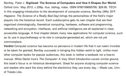 Today there’s a new review for my new book Digitized, in the USA publication Reviews Library Journal. Not too bad!