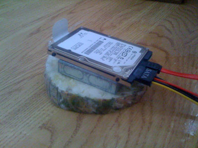 It did give me a chance to test the remedies I gave in the book first hand. In the book I reported the suggestions of others in this situation - lightly hitting with a hammer, cooling in freezer... but would any of these work for me? My disk had died so thoroughly it even prevented the computer from booting up when connected normally. Instead I removed it, created a fresh operating system install on a new disk, then linked the dead one to the computer via a USB interface. It took a tap with a screwdriver to unstick the heads and make it seek again. Using Data Rescue II software I was able to trawl the surface of the disk and see my data. But only sometimes - if the disk got too hot, it failed again. This was a problem because the software needed to try and access the disk continuously for many hours, which makes it hot. I had no fans, but if I put something frozen right next to it, then it became too cold and also failed again. Through trial and error, I discovered that putting the hard disk on a steel electrical socket installation box provided a good heat sink and air gap, then placing the box onto a slice of frozen pineapple (wrapped in clingfilm) provided the perfect natural cooling. Each slice lasted about 2 hours. Half a pineapple later and all my data was successfully retrieved.