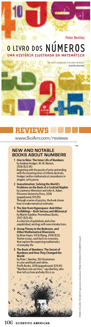 I received another batch of books from my publisher this morning. These are more translation editions of The Book of Numbers: German, US, Japanese, and Brazilian. Strangely the Brazilian version has a different cover image from all the others, and to my surprise it has a quote from Scientific American. I was surprised because to my knowledge Scientific American never actually reviewed the book. One of my PhD students solved the mystery - apparently my book was listed in Scientific American’s “New and Notable Books about Numbers” in May 2008, and the “quote” refers to that list. Not quite sure why they chose to do that when we have plenty of other good quotes, but perhaps in Brazil this is the best way to sell books… Anyway, the book looks very nice so I’m sure Brazilian readers should like it.