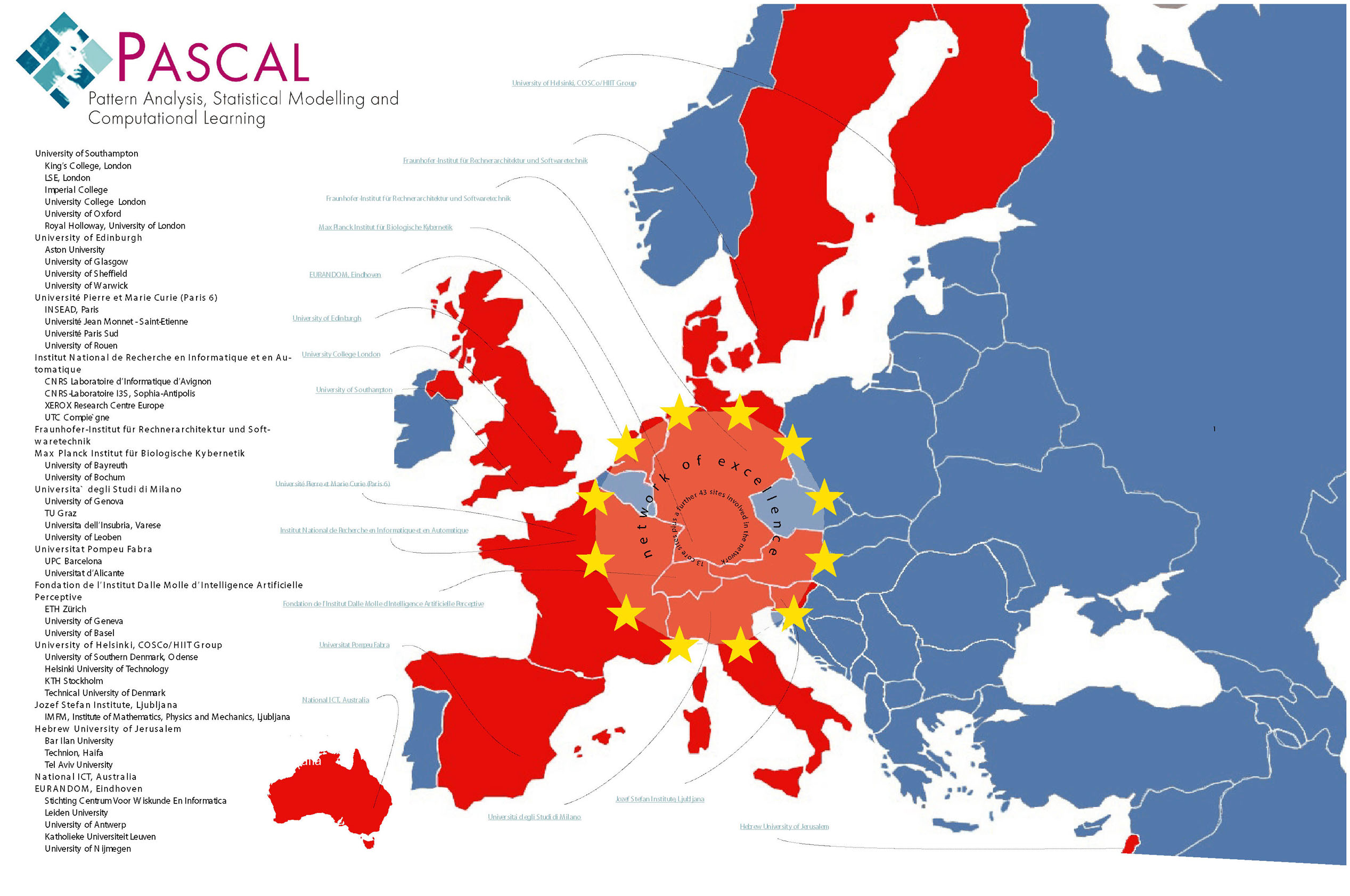 In its four years of existence between 2004 and 2008, PASCAL successfully created the infrastructure of a distributed institute. It is coordinated through an all-embracing web site that enables the managing of its activities through a set of programmes covering activities from Workshop organisation to Curriculum development (see later sections of this brochure). PASCAL has helped create a system for recording events and a repository of the state-of-the-art presentations on research topics covered by the network. It currently contains more than 60 complete events totalling 1253 lectures (see the article on videolectures later). In addition to video, a repository of research papers and technical reports with over 3000 entries produced during the project is maintained. PASCAL also has its own dedicated computing cluster for large scale computing work by network participants.